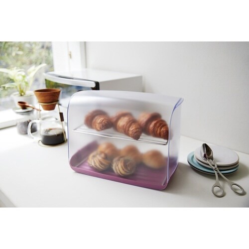 ブレッドケースや手作りお菓子のクーラーとしても使いやすい、ラック付き樹脂製ケースです。 食パン2斤を保管できるサイズで、ラックを使って2段にするとクロワッサンなどの小さめのパンも複数保管できます。 |