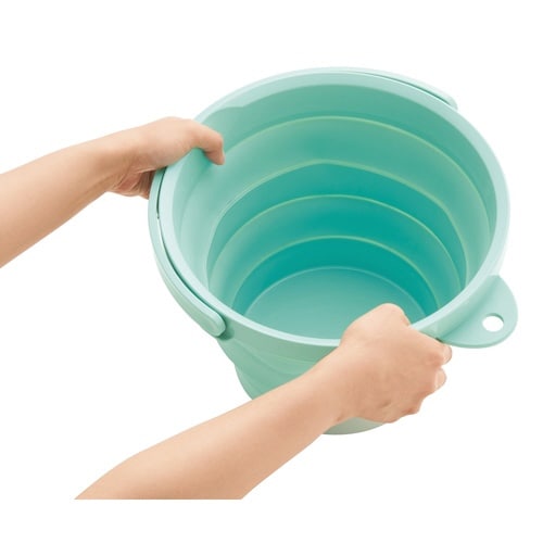 コンパクトに折りたためるソフトバケツです。 掃除や収納、レジャーや園芸など、様々なシーンで幅広くお使いいただけます。 折りたたんでフックに掛けて収納できます。 |