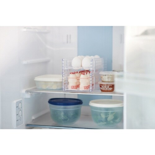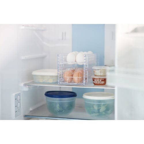 冷蔵庫の中をスッキリ整頓できるスタックラックです。 たまごトレーとトレーを重ねて使うと限られた冷蔵庫内をすっきり収納できます。 重ねにくいモノもきれいに収納できます。 |