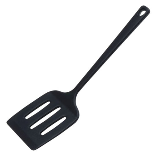 食材を返しやすい形状のターナーです。 耐熱性に優れたシリコーンゴム製です。 穴開きタイプだから、余計な脂や水分を落とせます。 |