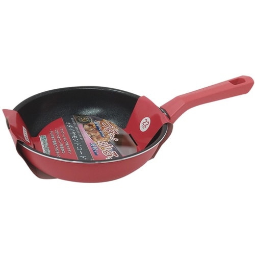 深型タイプの「フライパン 22cm」です。 内側には「ダイヤモンドコート」が施されているので、こびりつきにくく、調理もお手入れも快適です。 ピンクカラーがキッチンにパッと明るい印象を与えます。 |