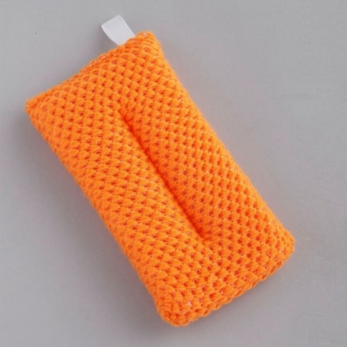 水だけで、食器の汚れや茶シブが落とせるスポンジです。 立体感のあるポコポコ編みが効果的に汚れに密着して落とします。 手にやさしいアクリル毛糸を使用しています。 2つに折り曲げやすいステッチ入りです。 |