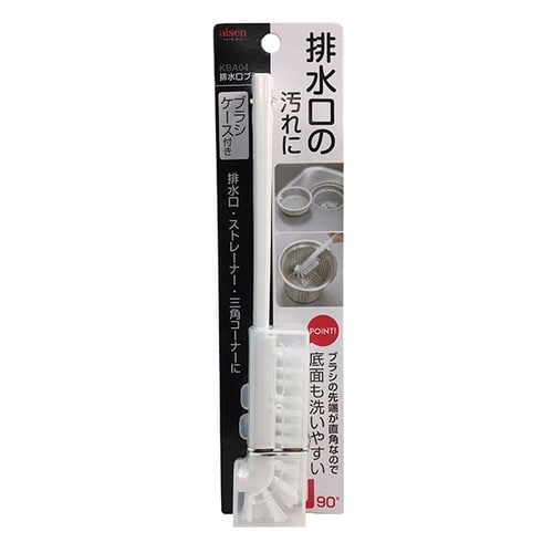 ブラシの先端が直角になっているので、排水口やストレーナー、三角コーナー等の側面や底面にフィットして汚れを落とします。 継ぎ目のない柄なので、力を入れてしっかり洗えます。 |