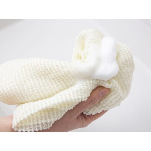 ポコポコとした凹凸感がお肌に心地よい、やわらかめのボディタオルです。 ナイロン特有のシャリっとした程よい刺激で洗えます。 少量の石けんやボディソープでもたっぷりの泡が立ちます。 |