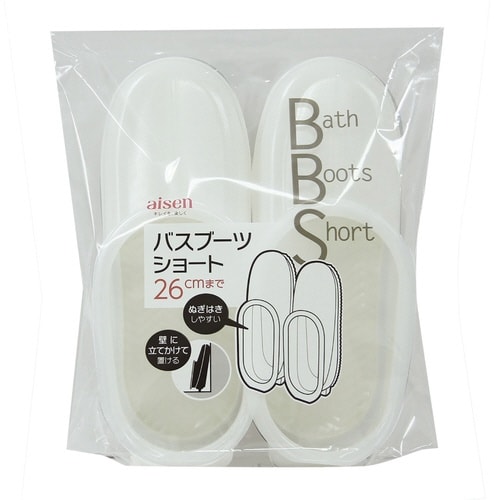 濡れたお風呂場のお掃除に便利なバスシューズです。 サイズ約26cmまで対応しています。 従来のバスシューズより高さを短くしたことで、脱ぎ履きしやすいです。 |