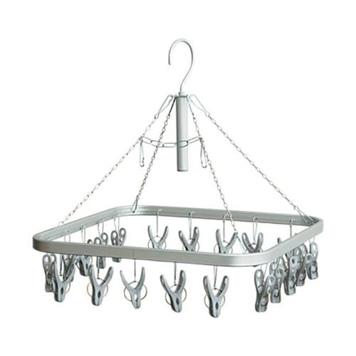 室内のあらゆる場所に水平に干せる、ピンチハンガー20ピンチです。 チェーンフックを取り外して移動することにより、タンスの引き出しやクローゼットなどに水平に干すことができます。 |