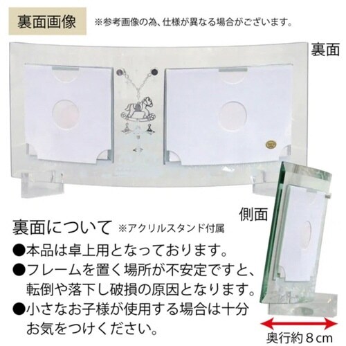 透明ガラスにベビーモチーフをプリントし、メリーチャームでデコレートしたフォトフレームです。 チャームのラインストーンが輝きをプラスしています。 卓上用、アクリルスタンド付です。 ※対応写真サイズ:約 |