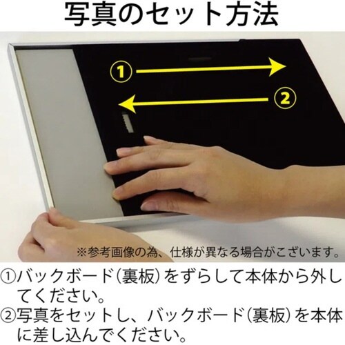 アルミフレームがスタイリッシュな、置き・掛け両用フォトフレームです。 対応フォトサイズは、L判サイズ(×3枚)です。 |