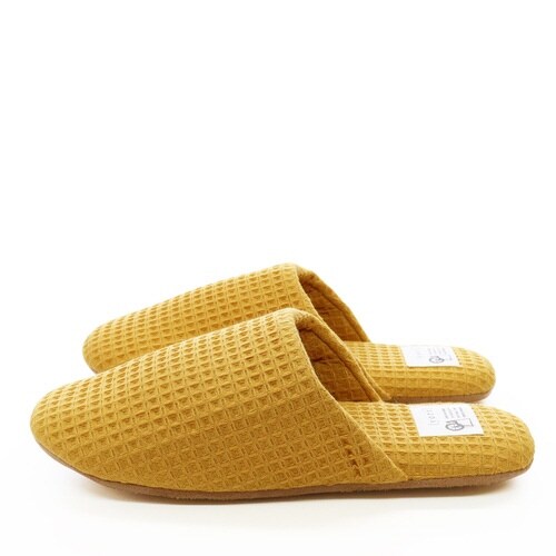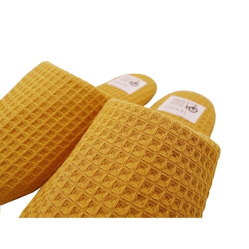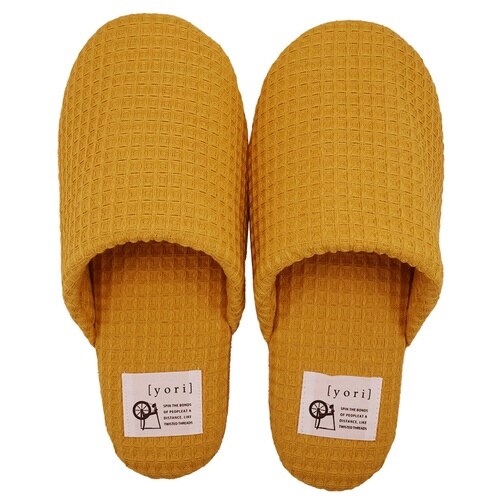 スリッパ yori コットンワッフル ソフト 綿100% Mサイズ Lサイズ イエロー(M)