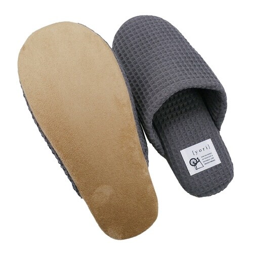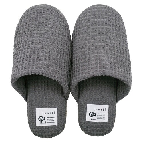 スリッパ yori コットンワッフル ソフト 綿100% Mサイズ Lサイズ チャコール(L)