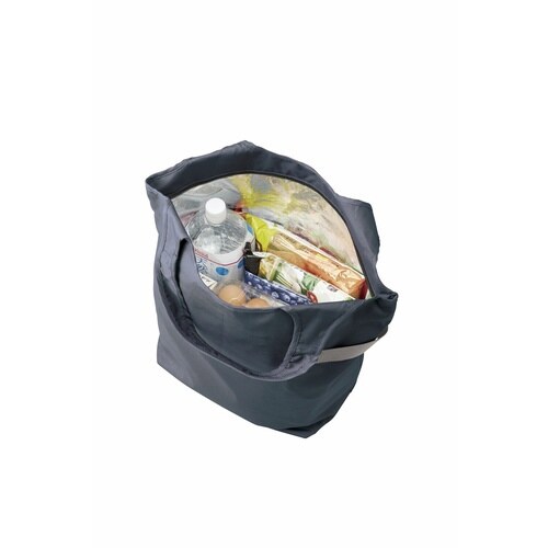 くるりと丸めて、コンパクトに持ち運べるクーラーマルシェバッグです。 内側は保冷仕様になっています。 バッグは自立するので、スムーズに物の出し入れができます。 |