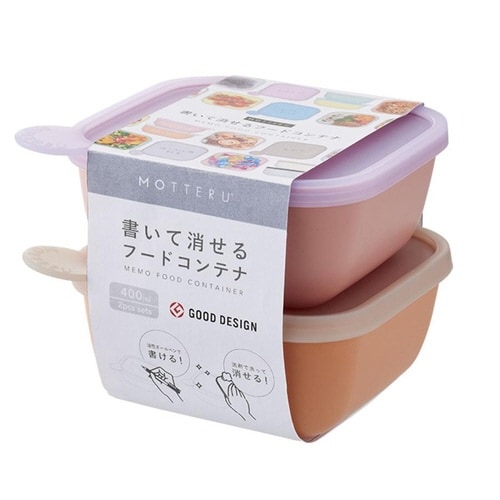保存容器 400ml 書いて消せるフードコンテナ 2個入 MOTTERU ピーチオレンジ