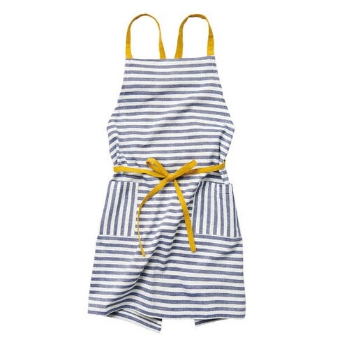 エプロン ストライプ柄 エブリン 綿100% ネイビー