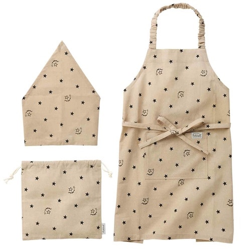 エプロン キッズ 3点セット 綿100% ポケット付き ケイト 星柄 ベージュ