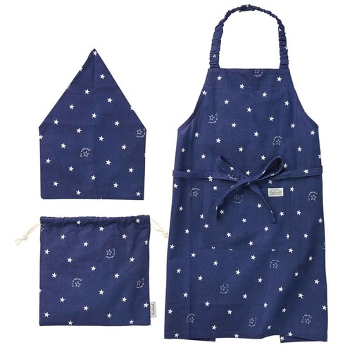 エプロン キッズ 3点セット 綿100% ポケット付き ケイト 星柄 ネイビー