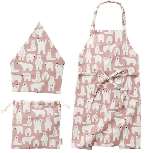 エプロン キッズ 白くま 3点セット コニー 綿 ピンク
