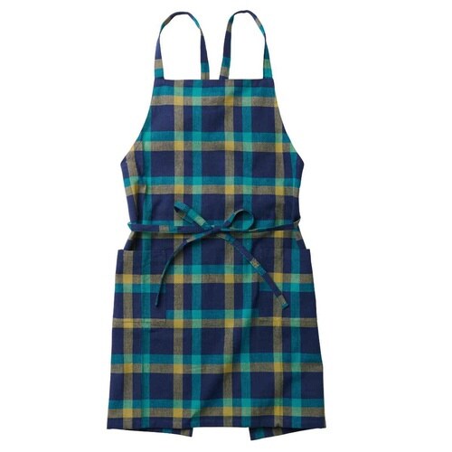 エプロン 綿100% ポケット付き チェック ブリトニー ネイビー