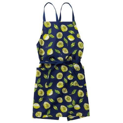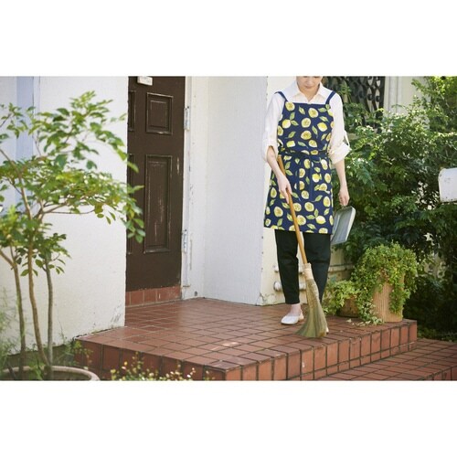 エプロン 綿100% ポケット付き レモン柄 アグリューム ネイビー