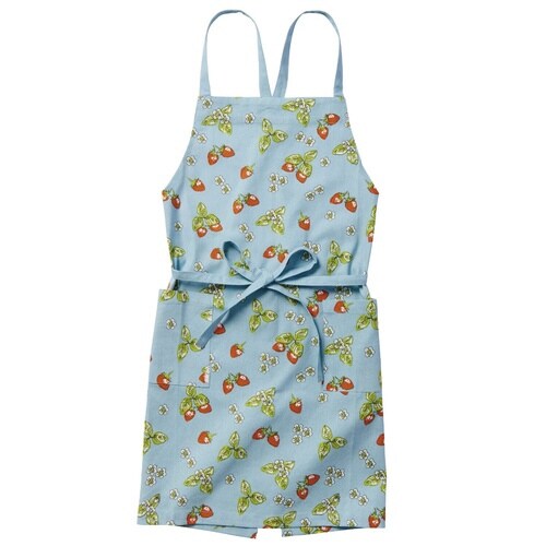 エプロン 綿100% ポケット付き いちご柄 ベリー ブルー