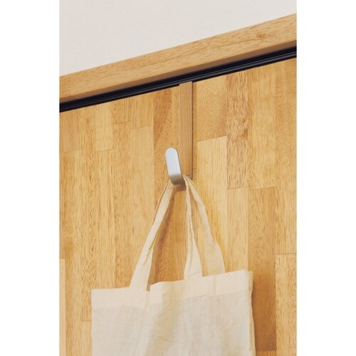 ドアの上部に引っ掛けて使うフックです。 引っ掛けるだけで使えるので、届いてすぐ使い出すことが出来ます。 掛けやすいJ型形状です。 服やかばんを掛けておくのにちょうど良く、便利です。 |