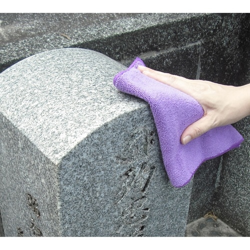 墓石の磨き上げに最適な、マイクロファイバー(超極細繊維)で出来たダスター2枚入です。 繊維が非常に細かいのでその隙間に汚れを引っかけて落とします。 |