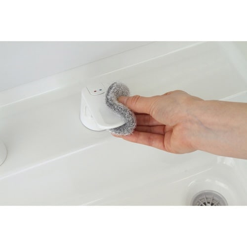 洗剤を付けずに水だけで水垢・汚れを落とします。 洗面台のカーブにフィットし、しっかり洗えます。 洗面台の掃除に丁度いい小さめサイズです。