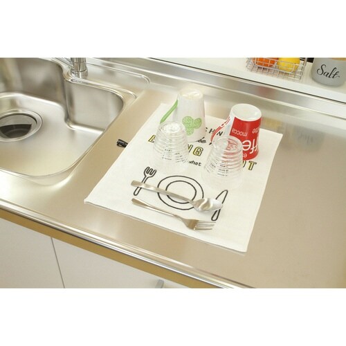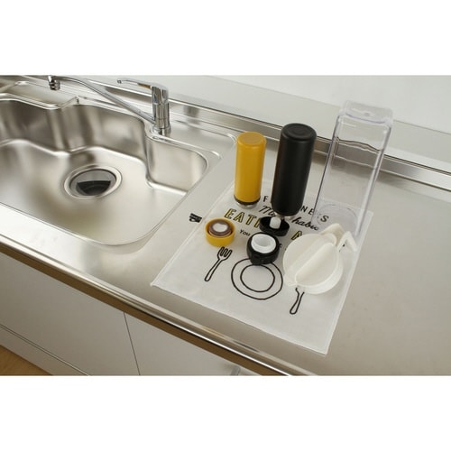 英字のデザインがおしゃれな水切りマットです。 2層構造になっており、吸水性がよく乾きも早いので衛生的にお使いいただけます。