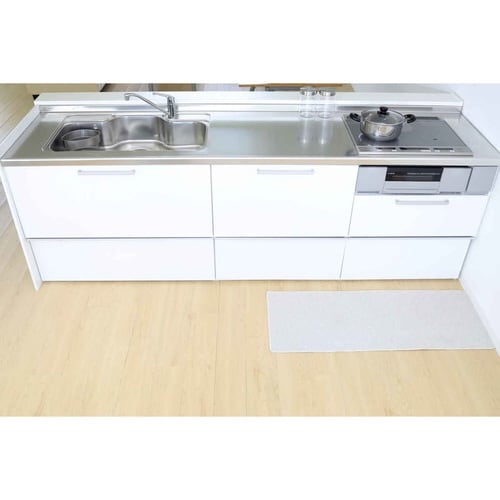 はっ水加工でお手入れがラクな薄型キッチンマットです。 コンパクトに折り畳めるので、汚れが気になったらさっとお洗濯ができます。 床暖房対応のすべり止め加工付きなので、ズレを気にせずお使いいただけます。