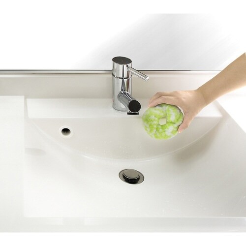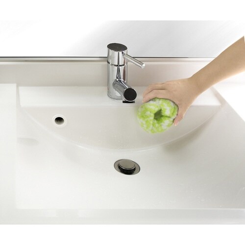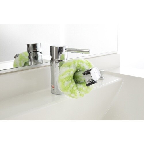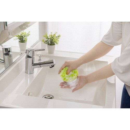 特殊断面繊維を使用した水だけで汚れを簡単に落とせるスポンジです。 柔らかいので握りやすく、形が自由に変えられます。 直径約3cm以内の蛇口などに掛けることができます。 |