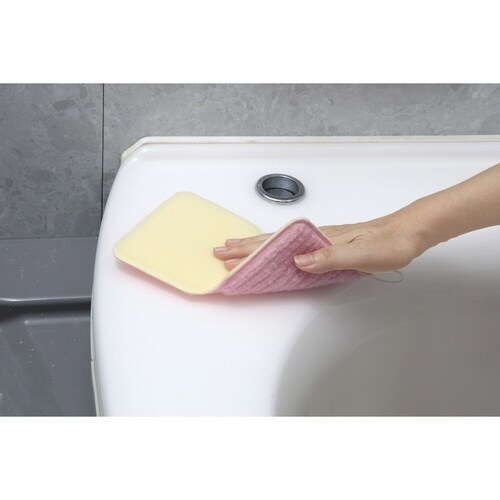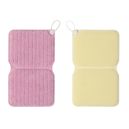 二つ折りで角が洗いやすいバススポンジ 形状に合わせてお風呂場全体が掃除できる カットして半分のサイズに 吊り紐つきで清潔に保管 |