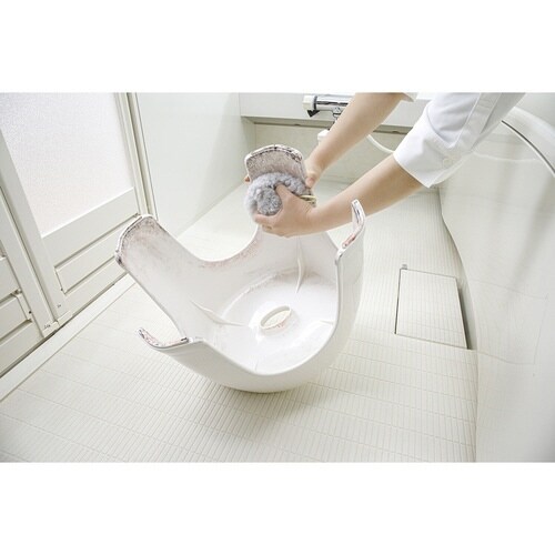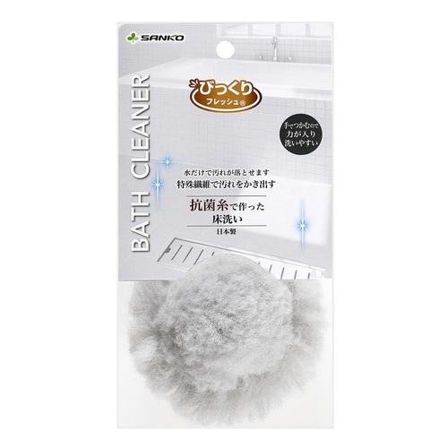 異形断面糸を使用した、水だけで湯アカなどの汚れを簡単に落とすことができるスポンジです。 抗菌加工が施されています。 繊維で洗うので、水はねしません。 |