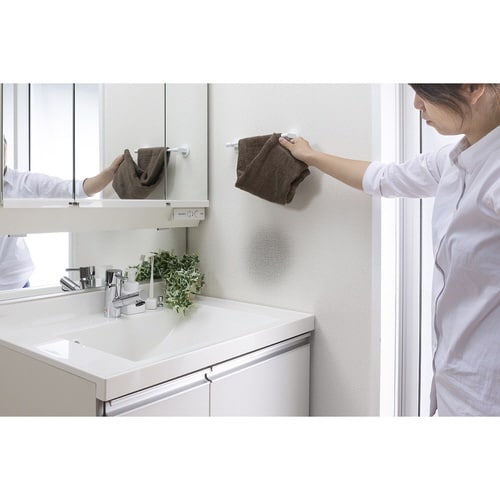 洗面所のタオル掛け近くの壁に貼り、汚れを防ぐシートです。 キッチンやトイレの壁にも使えます。 手洗いで、繰り返し洗濯できます。(目安10回程度) 貼るだけで取り付け、取り外し簡単です。 |