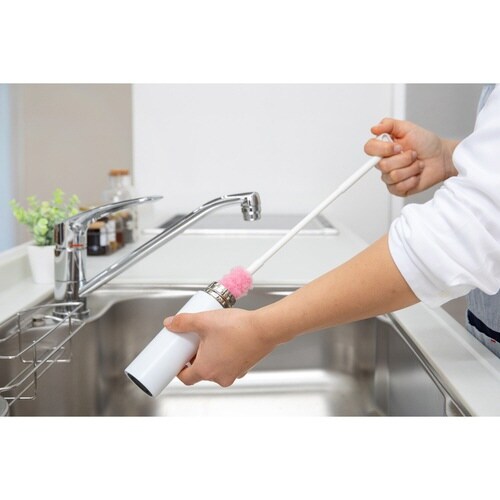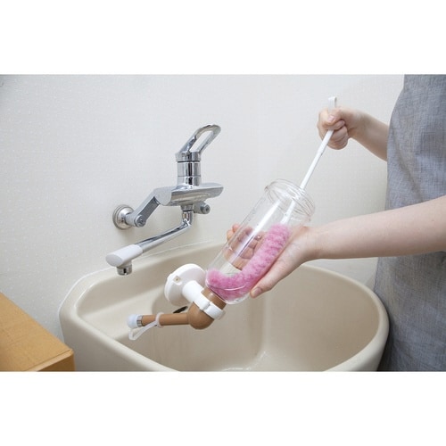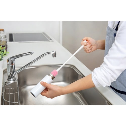 ペットボトルや細口ボトルなどの口径の細いボトルに使用できるボトル洗いです。 2リットルのペットボトルまで洗えるサイズです。 底の隅まできれいに洗えます。 |