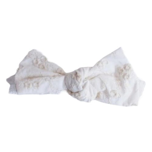 刺繍生地を使用したリボンヘアバンドです。 ガーリーなデザインが人気です 伸縮性のよいレースゴムなので、柔らかく、赤ちゃんの頭を締め付けません。 |