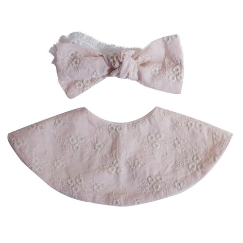 ギフトセット Lien de famille 2点 スタイ ヘアバンド 日本製 ニューボーンフォト 女の子 出産祝い おしゃれ ピンク