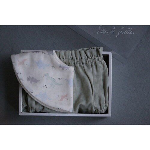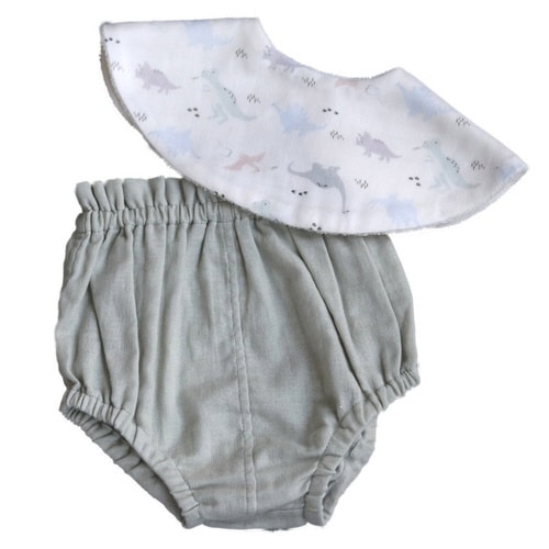 可愛らしい柄がデザインされたスタイとブルマのセット 赤ちゃんに優しいダブルガーゼ ワンタッチで留めやすい 出産祝いやプチギフトにも Lien de famille(リヤンドファミーユ ) |
