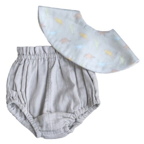 可愛らしい柄がデザインされたスタイとブルマのセット 赤ちゃんに優しいダブルガーゼ ワンタッチで留めやすい 出産祝いやプチギフトにも Lien de famille(リヤンドファミーユ ) |