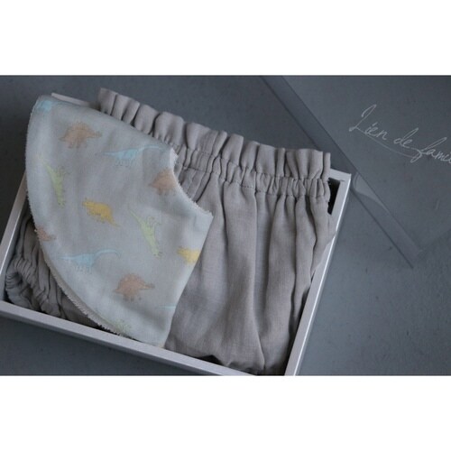 ギフトセット Lien de famille ダイナソー グレー 2点セット スタイ ブルマ