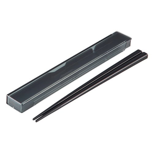 小森樹脂 箸箱セット 箸・箸箱セット(M) 静音スクエア型 無紋 墨 9324-9553