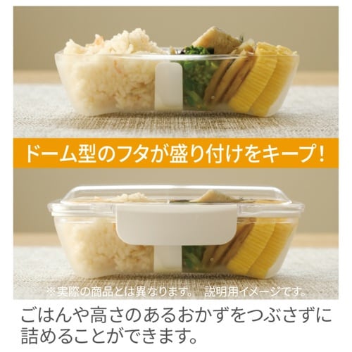 小食の方にもピッタリな500mlの1段型のお弁当箱です。 盛り付けをつぶさずきれいに保てるドーム型の蓋です。 本体にはご飯がくっつきにくいエンボス加工が施されています。 |