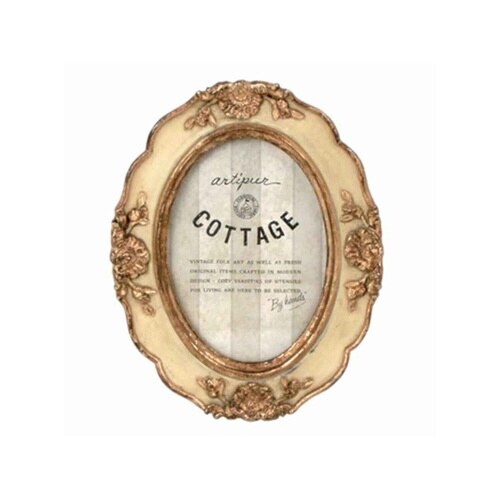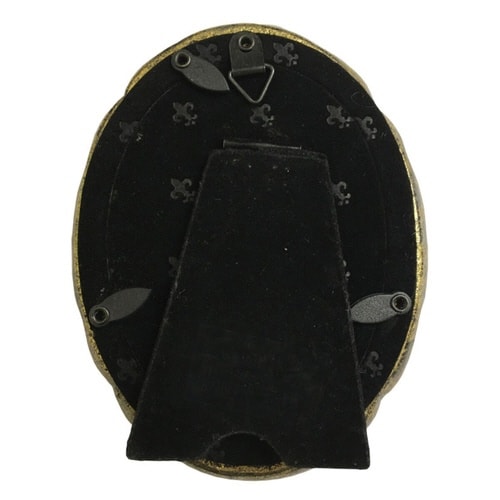 小さな楕円形のフォトフレームです。 アンティークのような雰囲気です。 置くことも壁にもかけることもできます。 |