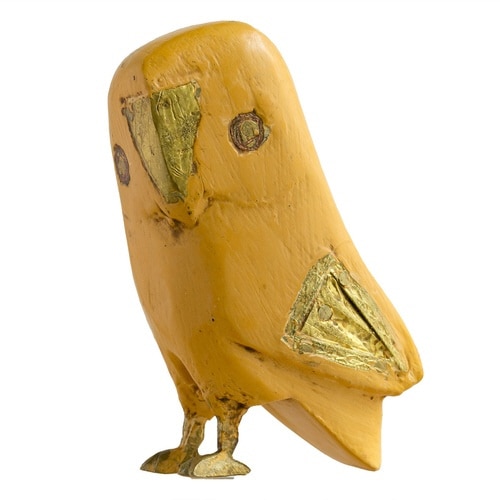 オブジェ フクロウ Sサイズ マスコット 木製 マスタード