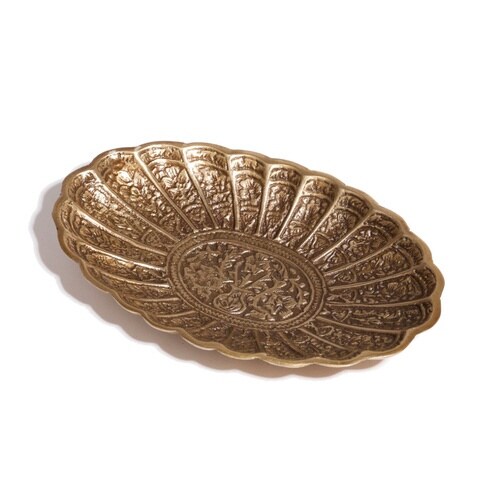 繊細な型押し模様が美しいインドの真鍮トレーです。 アンティークの様な雰囲気が高級感があって人気です。 真鍮素材は使う程、良い雰囲気を演出します。 |