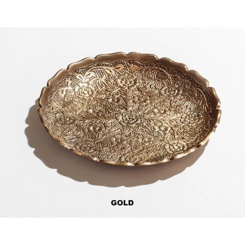 繊細な型押し模様が美しいインドの真鍮トレーです。 アンティークの様な雰囲気が高級感があって人気です。 真鍮素材は使う程、良い雰囲気を演出します。 |