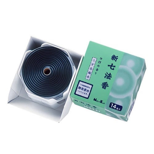 白檀の香りの渦巻きタイプのお線香です。 燃焼時間は約12時間、14巻き入りです。 7日間、香を絶やさずにお使いいただけます。 すぐに使える簡易香台付きです。 |