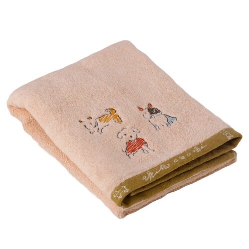 バスタオル 60×120cm 日本製 Wonderful World by obuchi わんぱくわんこ ピンク