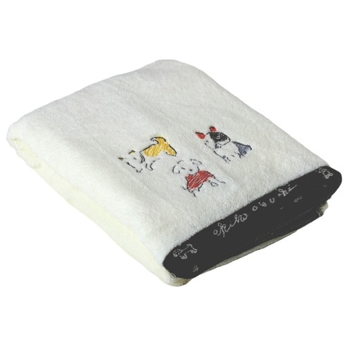 バスタオル 60×120cm 日本製 Wonderful World by obuchi わんぱくわんこ ホワイト