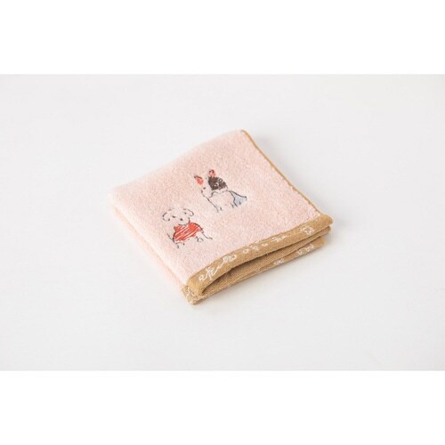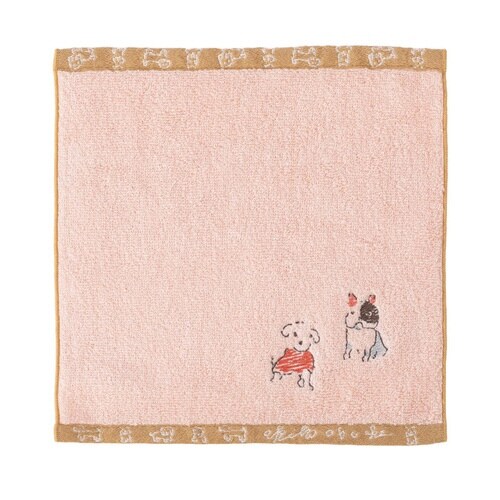ミニタオル 25×25cm 日本製 Wonderful World by obuchi わんぱくわんこ ピンク