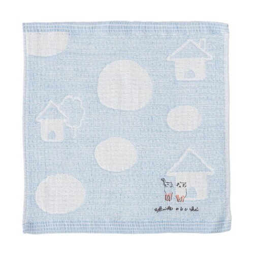 ミニタオル 25×25cm 日本製 Wonderful World by obuchi マイホーム ブルー