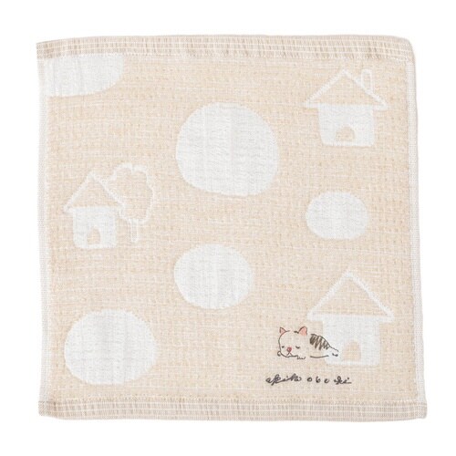 ミニタオル 25×25cm 日本製 Wonderful World by obuchi マイホーム ベージュ
